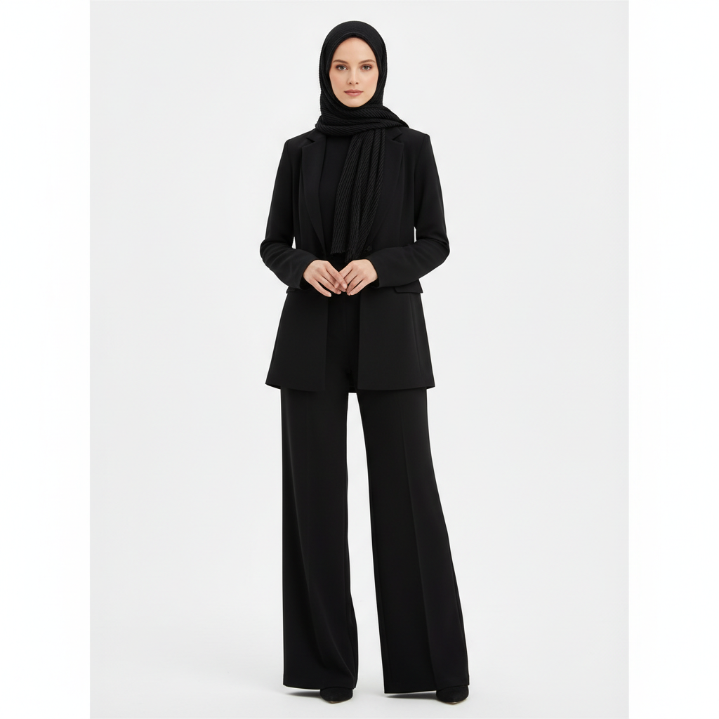 شلوار مجلسی زنانه ، مدل راسته،کرپ ژاپن اصل پوشینا ، مشکی (فوق العاده مشکی دوخت حرفه ای و مزونی) (پس کرایه) عمده 7 عددی